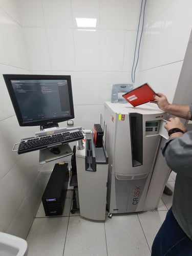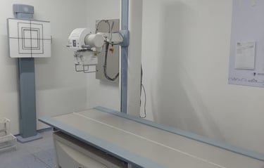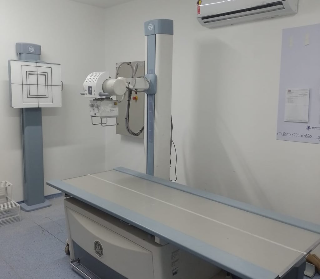 Equipamento de Raios-X de mesa (fixo) de tecnologia do tipo Alta Frequência de 500MA e 150KV instalado em sala de 22 metros quadrados na capital paulista, bem como conjunto de CR com DRY, configuração de PACS, impressão em papel. Treinamento de utilização para todos os técnicos do local assim como configuração de programas de órgãos presente na máquina.